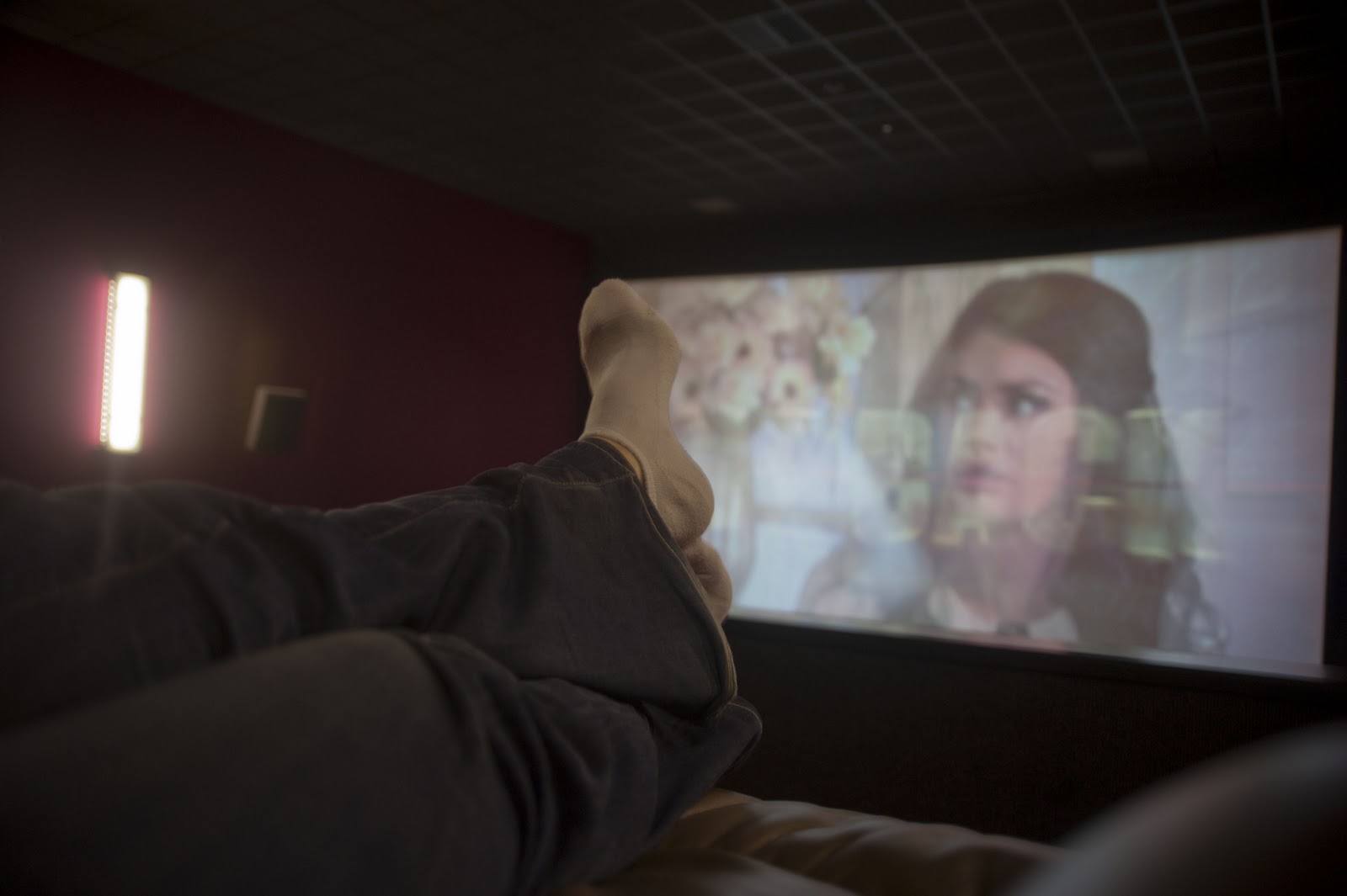 | Anna and me getting ready for the movie to start with all of our terrible food. |